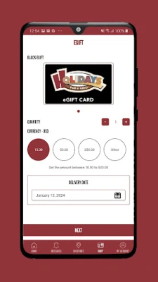 Download it today for free and you’ll be able to: • Join our program and begin earning rewards today. • Find a Holidays that’s closest to your location. • Check out our menu. • View your member account balance and your rewards. • Add stored value to your account at any time with the recharge feature. • Get notifications from us announcing new menu items, special events, and more!