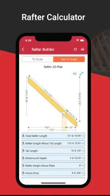 Easily create to-scale 2D and 3D rafter plans by simply inputting the roof angle, run length, and overhang length. The app generates essential measurements, including total rafter length, rise from the top of the wall and facia, rafter tail length, and birds-mouth measurements.