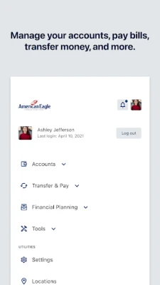 Making your financial life easier is our goal. Bank securely with the American Eagle FCU Mobile App: Apply for a loan, deposit checks, pay bills, manage your accounts, monitor your credit score, budget, and track spending on the go – all in one app.