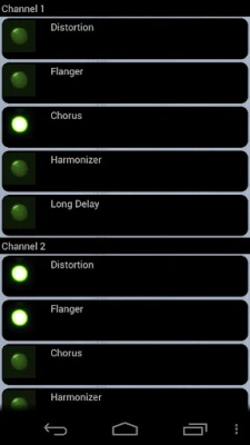 There are a few basic effects -- we hope you like them! This app is free and unsupported by ads. So if you do like it, you'll love Delay Effects Plus which also has a fully configurable effect rack including Wah Wah effect, a Tremolo effect, an integrated tuner and an"output to Wifi" feature that turns your phone+guitar into a wireless/mobile guitar. In addition, if you have a Nexus 7, Nexus 10 or Galaxy Nexus, Delay Effects Plus will have significantly less delay with the "Native" mode.