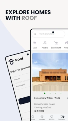 "Roof." is a mobile application designed to help users find and rent properties. Whether you're in search of your dream home or looking to list your property for rent, Roof simplifies the process. It offers property listings, enabling users to explore various housing options, and facilitates communication between property seekers and listers. With user-friendly features and a focus on convenience, Roof makes the property rental experience efficient and straightforward.